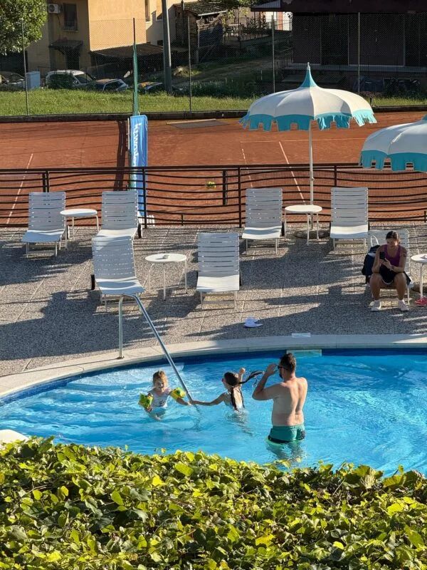 Infrastruktura tenisowa: Wszystkie treningi odbywają się na 4 bardzo dobrze przygotowanych kortach tenisowych z mączki ceglanej, należących do hotelu. Nawierzchnia zapewnia idealną przyczepność, a z kortów roztacza się widok na Alpy.